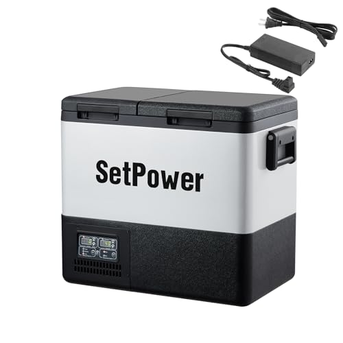 35W Low Power Consumption: MAX and ECO cooling modes are optional in the Setpower portable refrigerator, consuming less than 35W/H in ECO mode and less than 52W/H in MAX mode.With Setpower powerful compressor, this car refrigerator can quickly cool from 70°F to 32°F in 15 minutes; it takes about 45 minutes to reach a minimum temperature of 0°F