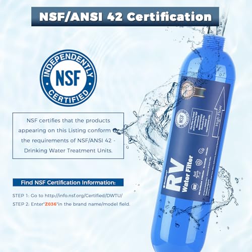 NSF Certified and Advanced GAC & KDF Filtration: This RV water filter is NSF/ANSI 42 certified, independently tested to meet the highest standards. Effectively reduces chlorine, heavy metals, odors, and sediments for healthy drinking water, with advanced GAC (granular activated carbon) and KDF (Kinetic Degradation Flux) filtration technologies.