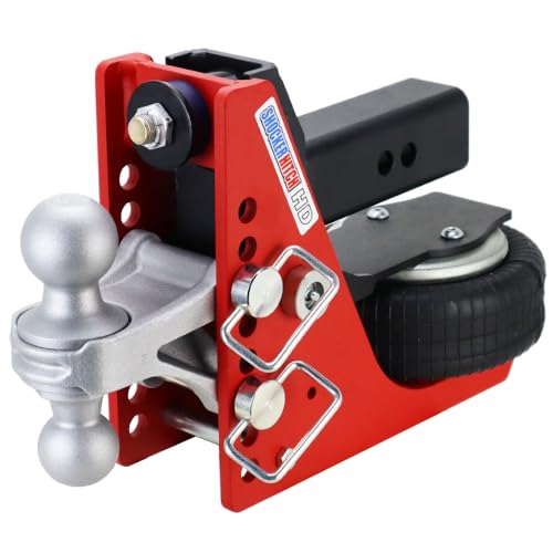 Fits 2-1/2" Hitch Includes Shocker Heavy-Duty air bumper hitch, adjustable combo ball (2" & 2-5/16" ball) along with 3 D-handle ball mount pins. Made in the USA by Shocker Hitch, Jamestown, ND. Towing capacity is limited by lowest rated component.