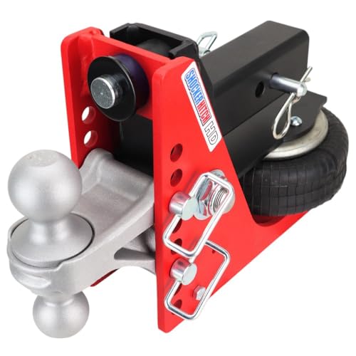 1/2" to 4-1/2" drop. Includes Combo Hitch Balls - 2" and 2 5/16" - Just flip around when pulling trailers with different couplers. Improves Safety: By giving you improved control of your tow vehicle and trailer. The air bag receiver hitch system allows for better control of your pickup and the trailer it is towing.
