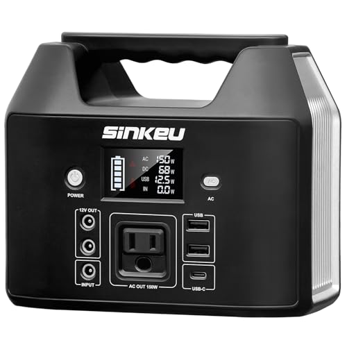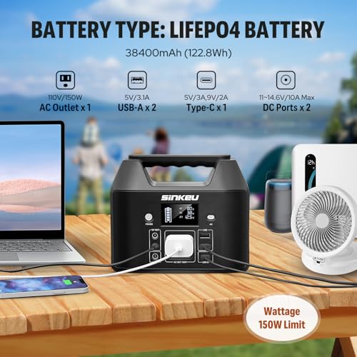 Upgraded with LifePO4 Battery: The SinKeu E150 122.8Wh portable power station is built in LiFePO4 batteries with ultra-durable electronics,this upgrade ensures the power station's longevity,more safe,stable,quiet and longer battery life; It provides a lot of power and is capable of running your smaller appliances like laptop,CPAP or mini fridge(Modified sine wave)