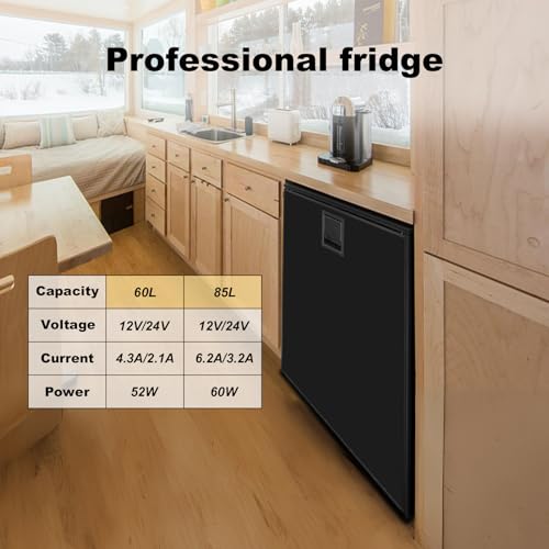 Easy to Install: Please keep the refrigerator upright for 24 hours before use and pre-cool it for 1 hour with the electricity connected, when installing pls keep the vents of the fridges at least 150mm clear from other things. The compressor is very quiet, so you won't even hear it when it's working . The car cooler won't drain the battery of the RV. The 12 volt refrigerator has door seals nicely, which can keep cool for hours without power