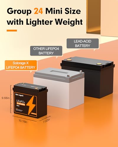 ?Mini Size, Max Power?Solorage X 12V 100Ah LiFePO4 Auto battery MINI is remarkably compact, 30% smaller than previous models. Despite its size, it delivers a powerful punch, providing 100% 1200Wh energy storage. Install this mini battery wherever space is limited.