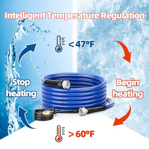 Not Frozen at -49°F : The unique intelligent temperature control system of the heated water hose can prevent the water in the hose from freezing in cold winter. It can help countless families avoid the plight of water shortages in extremely cold weather