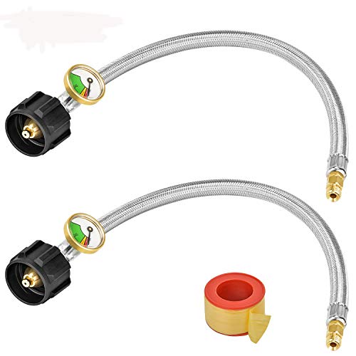 Package include: 2 pcs, ACME nut x 1/4" male Inverted flare, 15" stainless steel RV propane hose.