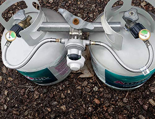 Designed to connect: Camper's 1/4" inverted flare inlet 2-stage auto changeover regulator to a QCC1 5lb-40lb LP tanks.