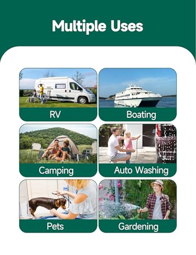 Durable, Leak-Resistant Design Food-grade, burst-resistant plastic housing with rust-proof copper fittings and a silicone washer ensures no leaks. Flexible hose protector and 360° swivel reduce kinking and connection strain, ideal for rugged RV, camping, or marine use. Lead-free, BPA-free, and non-toxic for worry-free hydration.