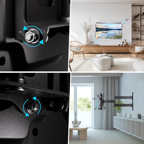 ?Full Motion Flexibility?The rotation angle of the TV bracket is+90°/-90°, the tilt angle is+10°/-2°, and the level adjustment is+4°/-4 °. The wall mount TV bracket can extend up to 19.6" from the wall or contract back to 1.85". After installation, it can achieve flexible rotation and extension. Please note that the TV mount only supports installation on wooden walls, concrete, and brick walls.