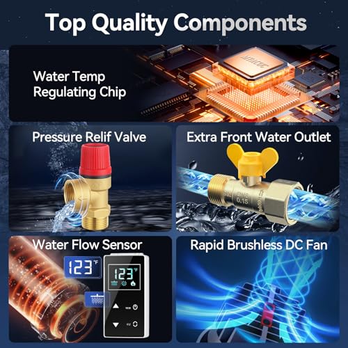 EFFICIENT AND VERSATILE - This tankless water heater for RV is equipped with high efficiency heating coils and intelligent temperature control, ensures 85% heating efficiency while minimizing electricity and propane consumption by 40%. Its graded fine-tuning combustion system allows precise flame control, you decide the water temperature between 95 and 123°F, and it will be maintained stable and does not rise or fall suddenly. The water needs to flow for seconds for the heater to detect flow and start the fan and burner