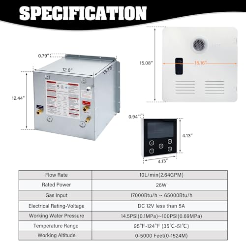 Versatile Performance: From high-altitude adventures to varying temperatures (95?-124?), TCFUNDY RV water heater excels. Its compact design fits snugly in RV holes, ensuring comfort wherever you travel! It handles cold with ease. No freezing worries!
