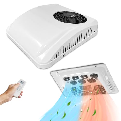 ??????Efficient Cooling & Heating Performance - This 12V Rooftop Air Conditioner delivers 9500 BTU of Cooling power & Heating Function, maintain ideal temperatures inside your RV, camper, or motorhome—even during scorching summers.Designed with a focus on energy efficiency, this device significantly reduces power consumption, ensuring it serves as an ideal companion for travel—all while maintaining exceptional performance