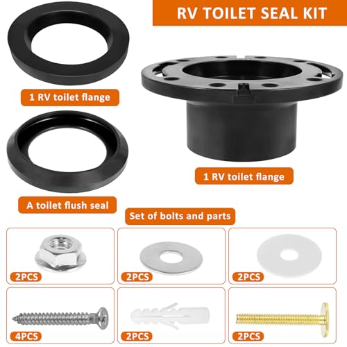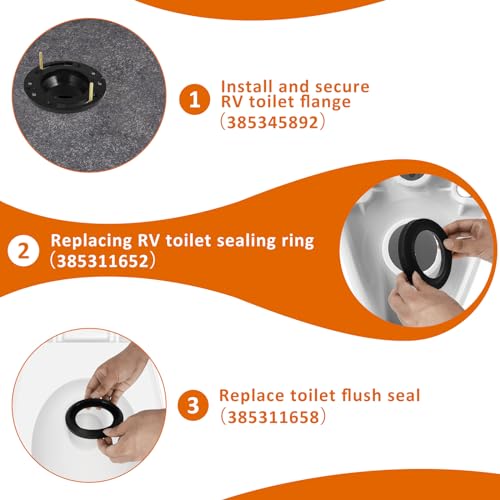 [RV Toilet Seal Kit] This kit includes 1 RV Toilet Flange (385345892), 1 RV Flush Toilet Seal (385311652), 1 Flush Toilet Flush Seal (385311 658), and a set of bolts and parts. The perfect solution to RV toilet sealing problems.