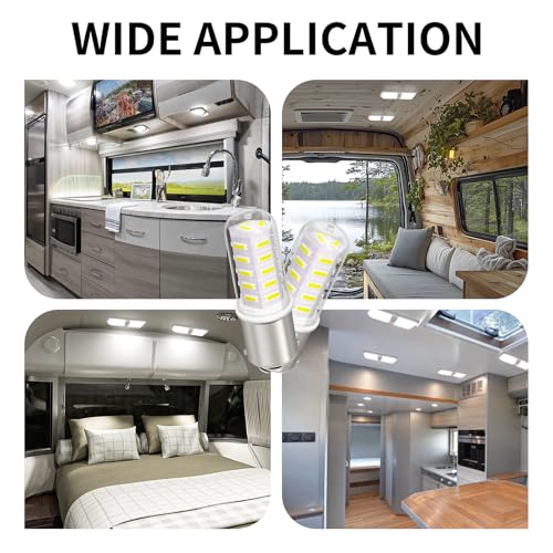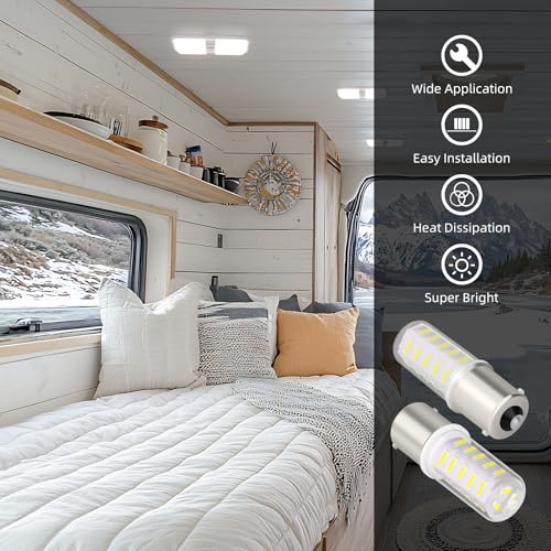?BA15S LED BULBS?: This camper light bulbs provides daylight white illumination (6000-6500k) for landscape RV camper interior marine boat trailer lights. Please check your fixture base before purchasing.High quality PC lens cover,which is effective for strong vibration machines,such as snow blower