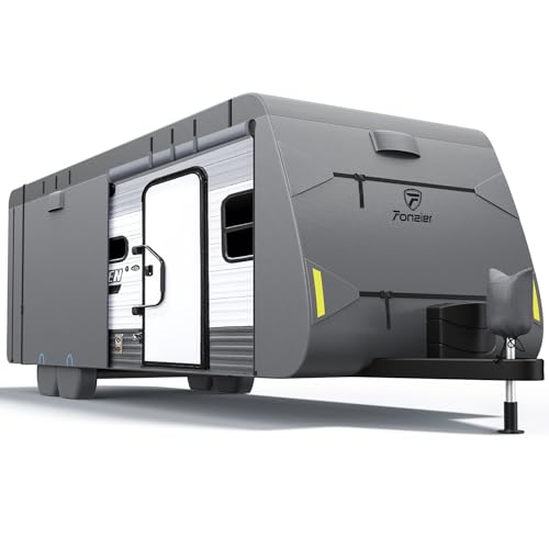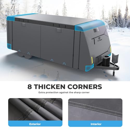 ?Weather Resistance?The upgraded Oxford fabric is coated with polyurethane, providing a waterproof depth of up to 2000 mm. The ultra-thick 6-ply RV trailer cover offers protection against rain, snow, strong winds, bird droppings, dust, and scratches. It effectively reduces premature aging of your RV and extends the cover's lifespan.