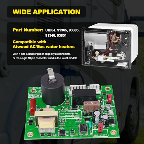 Wide Application: Universal Ignitor Board compatible with Atwood AC/Gas water heaters GC10A-4E, GC6AA-10E, GCH6A-10E, GCH10A-4E. Features both 4 + 6 header pin or edge style connectors, or the single 10 pin connector used in the latest models