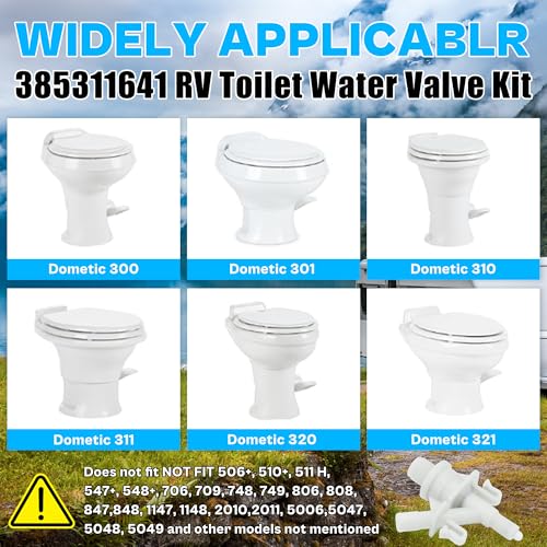 Wide & Precise Compatibility--This 385311641 do.metic toilet valve kit is specifically engineered to fit Dom.etic 310, 300, 320, 311, 321 series RV toilets—the most popular models for U.S. RV owners. It replaces OEM part numbers 385311641 (water valve) making it a direct replacement for Sealand, Traveler, and Vacu-Flush pedal-flush toilets. Perfect for RV campers, marine boats, and travel trailers. Note: Does NOT fit Do-metic 506, 706, 709, 806, 808, or other unmentioned models.