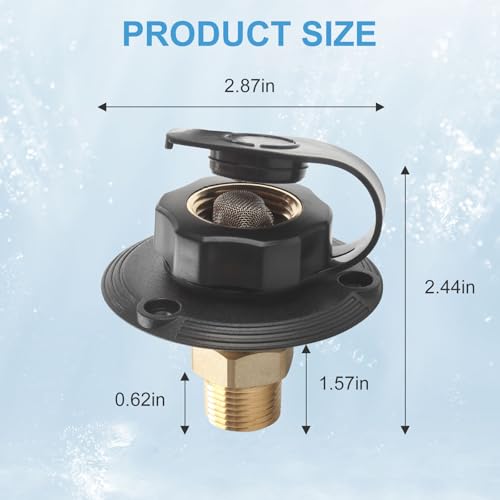 Function: This RV check valve prevents backflow and keeps pesky contaminants out of your RV's fresh water lines, and the rubber cover protects the connection from dust when not in use.