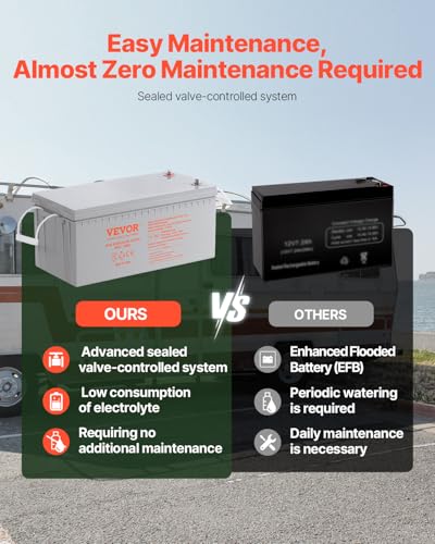 Heavy-Duty Deep Cycle AGM Battery: We use a 12V 200Ah rechargeable, maintenance-free battery that reduces upkeep, extends battery life, and stores a large amount of energy for longer run times. Dimensions: 21.7 x 9.4 x 8.7 in. Note: For security, use professional charging equipment during operation