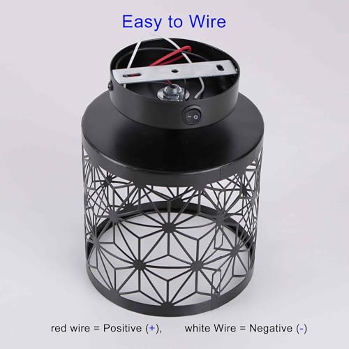 Surface mounted installation: size: Dia 5-1/2’’ X Height 7-1/2’’ X Base Dia 3-15/16’’. Wiring: red wire to positive and white wire to negative. Easy to install with Only 2 Screws (Included).