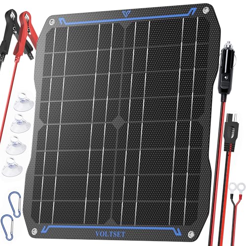 12V Solar Battery Maintainer: Charges vehicle, car, boat, RV, motorcycle, and trailer batteries. Prevents discharge damage. Works with lead-acid, lithium, and AGM types. Perfect solar trickle charger for marine/automotive use