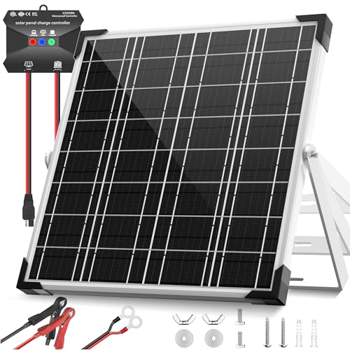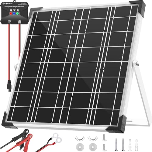 Versatile Applications: This solar panel kit includes alligator clips and O-rings for easy plug-and-play use. It charges 12V rechargeable batteries like LiFePO?; lithium; AGM; SLA; GEL; Flooded, and Wet types. Ideal for vehicles; boats; motorcycles; tractors; ATVs; trailers; lawnmowers; RVs; campers; gate openers; pumps, and electric fences