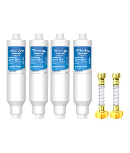 Waterdrop RV Water Filter, NSF Certified, Reduces Chlorine, Bad Taste, Odor, 4 Pack with 2 Flexible Hose Protector