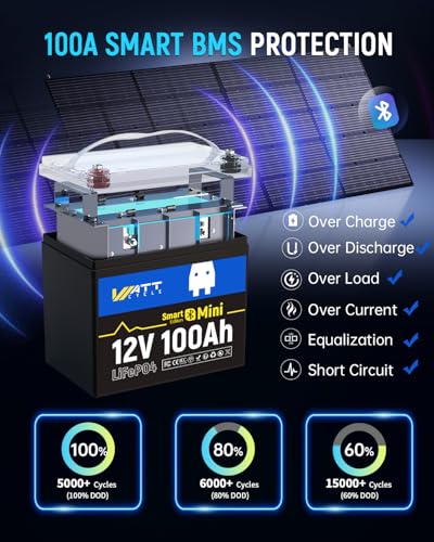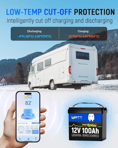 ?100A Smart BMS with Bluetooth 5.0 & Low-Temp Cutoff? Monitor real-time voltage, capacity, and health via the WattCycle App (10m Bluetooth range). Built-in 100A BMS guards against overcharge/discharge, short circuits, and extreme temps (-4°F~158°F). Auto-recovery from protection mode eliminates manual reset. Exclusive low-temp charging cutoff prevents damage in freezing conditions.
