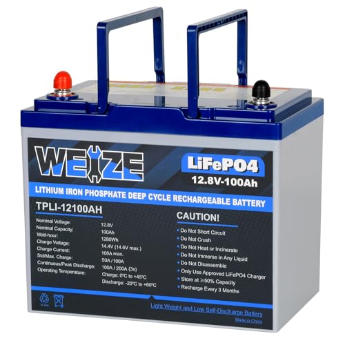 ? SAFE AND ENVIRONMENTALLY FRIENDLY: Made from 100% safe, nontoxic, not hazardous energy, Weize LiFePO4 battery has higher chemical stability, it is not prone to thermal runaway and will not overheat or catch on fire even if punctured. With no acid in the battery, you're able to safely mount in any position. BUT please read the user manual carefully before using, don't hesitate to call us if you have any questions about the battery.