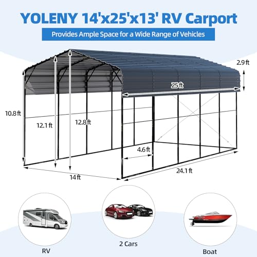 Versatile & Spacious Design: Measuring 14x25 feet with 350 sq. ft. of space, this carport accommodates RVs, SUVs, trucks, boats, and even up to 100 people. Perfect for outdoor events like parties or camping, it also doubles as a storage shed or garden room, making it ideal for both residential and commercial use