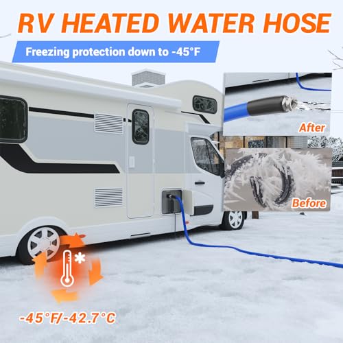 ?MUTIL-SCENE APPLICATION?More than just an RV water hose, this heated hose is your reliable solution for year-round use. It delivers dependable freeze protection and a steady water flow for various scenarios, including RV camping, garden irrigation, outdoor chores, boats, livestock care, and travel trailers, making it an essential accessory for all your adventures