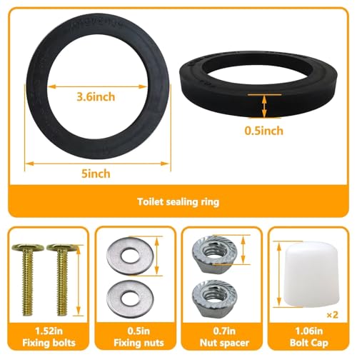 ?? Simple Installation: for RV camper toilet seal is easy to install. Just take out the old toilet ring seal and clean the rim and bowl area where the old seal was, then replace it with the new toilet seal. Finally, secure the toilet using the provided brass bolts, nuts and bolt caps.